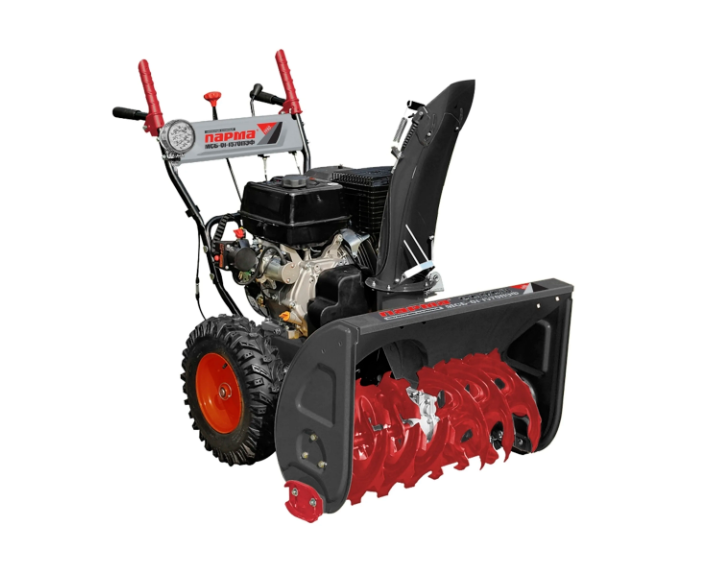 Снегоуборщик Парма оснащен бензиновым двигателем мощностью 15 л.с. и объемом 420 кубов с воздушным охлаждением, защищенным от сильных морозов. На снегоуборочной технике установлен топливный бак на 3,6 литров, что дает возможность работы без дозаправки в течение 2-х часов.
