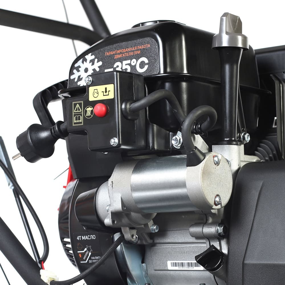 Снегоуборщик Патриот Про оснащен бензиновым двигателем мощностью 7,8 л.с. и объемом 220 кубов, защищенным от морозов до -35 градусов. Благодаря электростартеру, его можно запустить по нажатию одной кнопки в любую погоду, что обеспечивает удобство и надежность в эксплуатации.