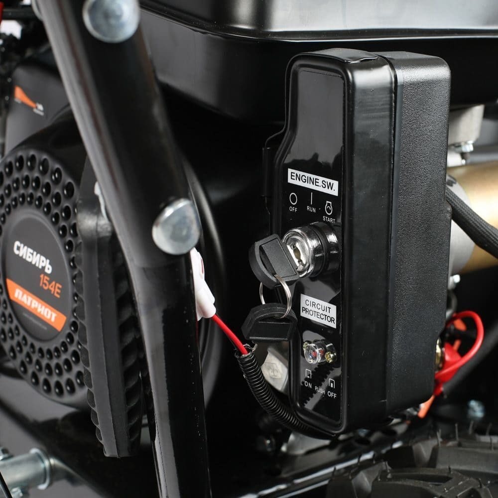 Снегоуборщик Patriot Сибирь 154Е относится к самоходным машинам. Поэтому работать с ним очень легко. Все элементы управления сосредоточена на приборной панели. Комфорт работы обеспечивается возможностью изменять скорость движения машины, а так же наличием реверса. Колёса с агрессивным протектором позволяют уверенно двигаться технике по рыхлому снегу и скользкой поверхности. Для работы в тёмное время суток на корпусе снегоуборщика имеется фара.