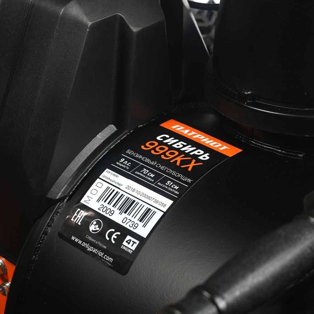 Производительный снегоуборщик PATRIOT Сибирь 999 ЕKX оснащается бензиновым 4-хтактным двигателем с наибольшей мощностью 9 л.с. Двигатель имеет как ручной, так и электростартер, чтобы вы смогли запустить его в любых погодных условиях. Благодаря наличию фар вы сможете убирать снег с помощью этого агрегата даже в темное время суток.