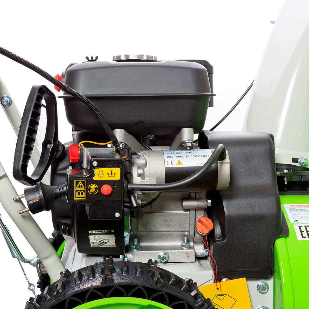 - снегоуборщик оснащен ручным стартером и электростартер (от сети 220В);