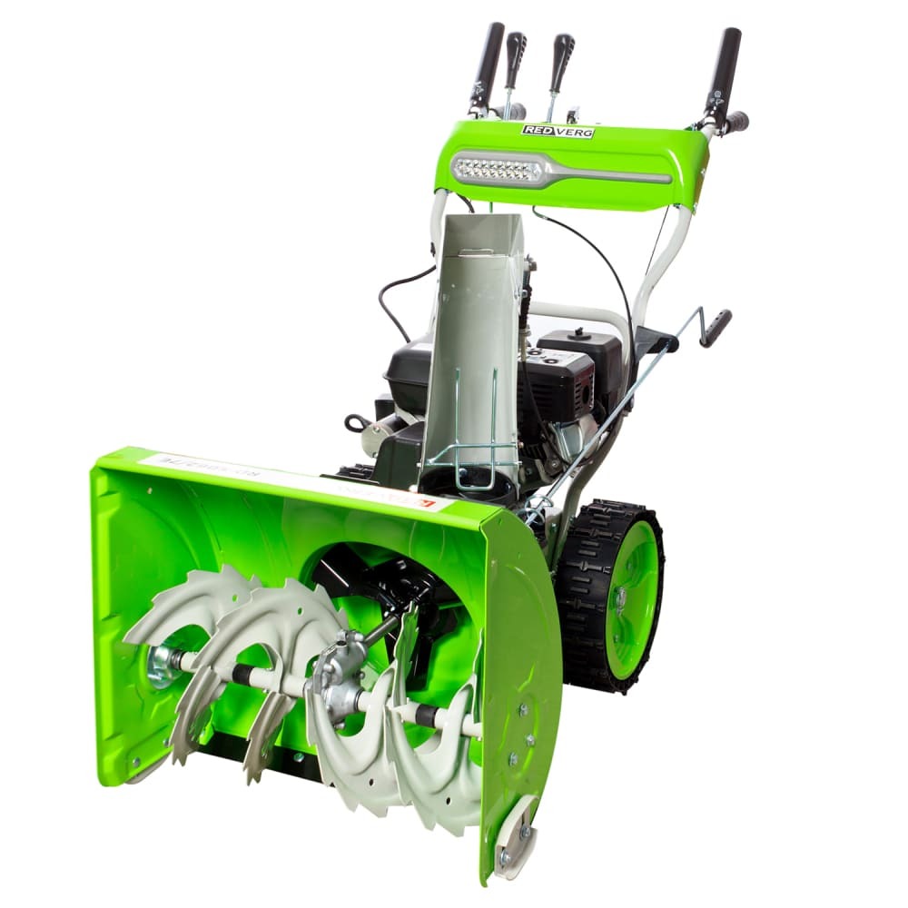 Самоходный снегоуборщик РедВерг оснащен бензиновым двигателем с воздушным охлаждением мощностью 7 лошадиных сил. Вместе с колесами с глубоким протектором, снегоуборочная техника легко перемещается, так как колеса предотвращают пробуксовку на обледенелых участках. Модель также оснащена датчиком уровня масла.