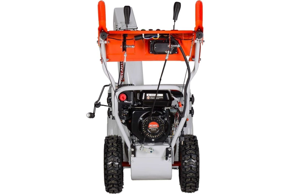 Снегоуборочная техника Ресанта оснащена бензиновым двигателем с воздушным охлаждением, а также мощностью 7 л.с. и объемом 196 кубов. Мотор защищен от сильных морозов и отличается моментальным холодным запуском.