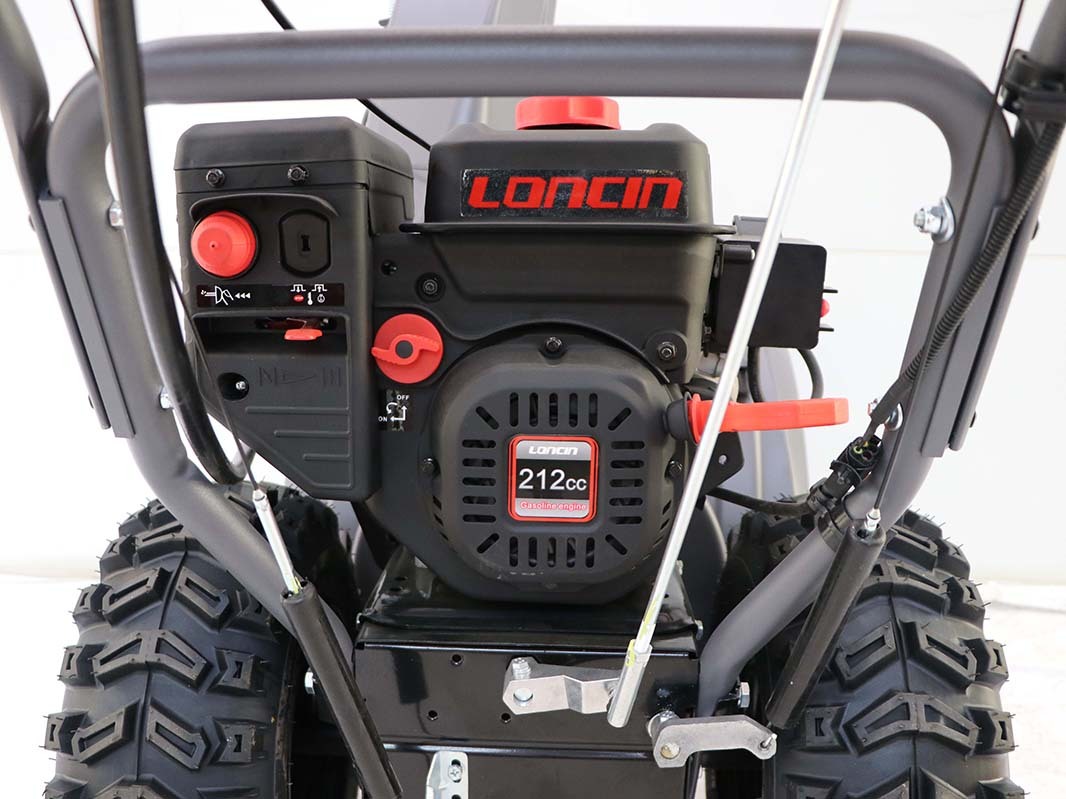 Снегоуборщик оснащен электростартером. Для запуска подключите его к сети 220 В.