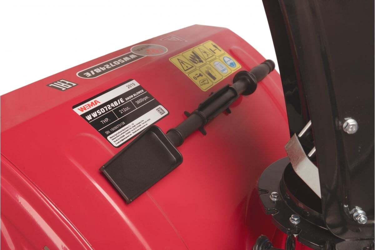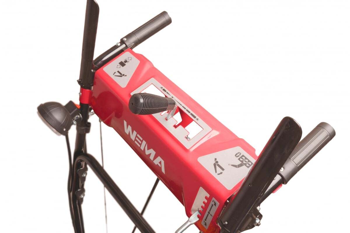 Снегоуборщик Вейма оснащен бензиновым двигателем мощностью 7 л.с. и объемом 212 куб. см. Благодаря системе воздушного охлаждения машина отличается длительной эксплуатацией и стабильной работой. На модели есть 5 скоростных передач (4 вперед и 1 назад). благодаря чему у вас есть возможность выбирать оптимальный режим работы в определенных условиях.